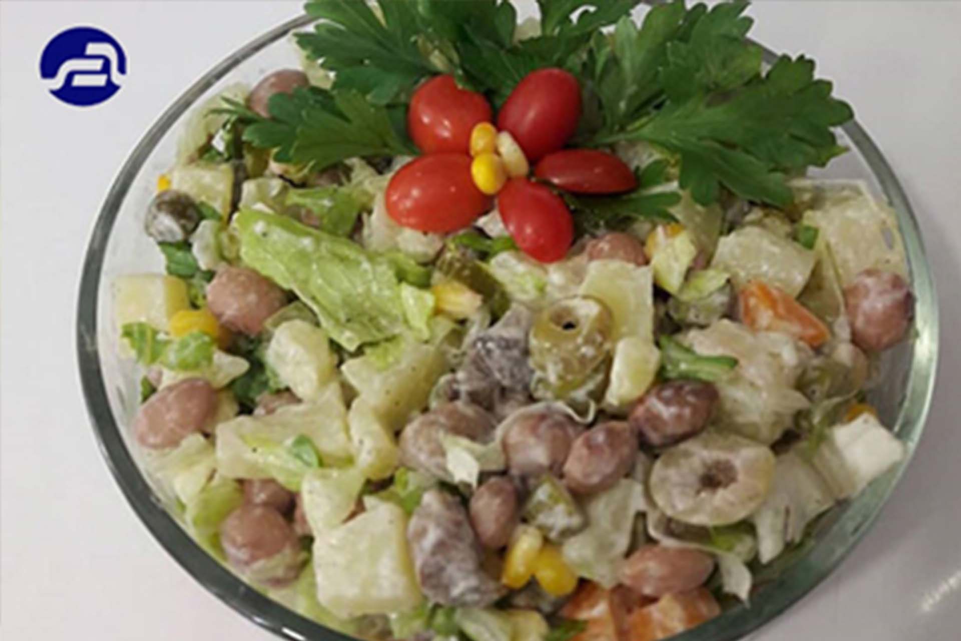 Boil the tuna and beans in some water for 20 minutes, then cook the potatoes and finely chop the mushrooms and lettuce and mash the tuna with the help of a fork. Properly pour the salt and olive oil and lemon juice along with the canned corn, add to the mixture and add some olive rings to the salad as desired. Add to the salad.